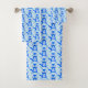This awesome patterned bath towel set features a digital art image of a cute blue Baby Boy Fox with a black nose and whiskers, bright blue bushy tail and belly and even blue fingers and toes. A cute design for celebrating a baby boy.
