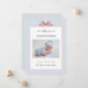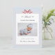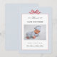 Adorable Modern and simple baby boy photo Birth announcement card featuring hand painted red bow in dusty blue and white background.