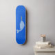 This awesome skateboard features a digital art image of a cute magical blue baby boy Narwhal. The main body of the Narwhal has a rough texture and is blue while the belly is a grey blue colour. The Narwhal has a black eye with a white pupil and a shiny gold horn on its face. It also has delicate tail and flippers.