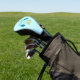 This awesome golf driver cover features a cute cartoon of a blue owl with sleepy eyes, a wide-open beak and cute fluffy feathers. The owl is holding a powder blue balloon. There is pale blue text inside the balloon that says, “Baby boy”. This is the perfect gift for celebrating a newborn baby boy.