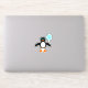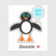This awesome shaped sticker features a cute cartoon of a blue penguin with blue eyes, a little orange beak and a white tummy. The penguin is holding a powder blue balloon. There is pale blue text inside the balloon that says, “Baby boy”. This is the perfect gift for celebrating a newborn baby boy.