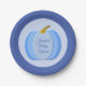Cute Blue Baby Boy Pumpkin Custom Baby Shower Paper Plate