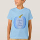 This t shirt features a digital art image of a cute blue pumpkin with 3 different shades of blue getting darker towards the edges of the pumpkin. There is a green stalk attached to the top. A perfect design for celebrating a baby boy, especially at Thanksgiving. There is custom text so you can include the name of the new baby above the words big brother or change it to whatever message you like.