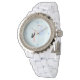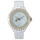 This awesome watch features a graphic image of a cute white Stork with black tail feathers holding onto a pale blue bundle of blankets. There is blue text on the bundle that says "Baby Boy". This design is perfect for celebrating a baby boy.