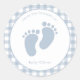 Cute Blue baby feet with blue and white gingham border personalised "from the nursery of" envelope seal. matching note card available.