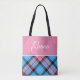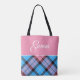 Cute Blue Baby Pink Plaid Tartan Personalised Name Tote Bag