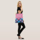 Modern, elegant and trendy customisable tote bag features "personalised name" on baby pink background at the top and pink / blue plaid tartan at the bottom.