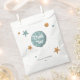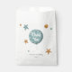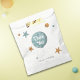 Complement your boy's first birthday favours with these cute birthday thank you favour bags. The blue and orange colours of the balloon and stars are soothing and beautiful. Personalise the text with your own. Illustrated and designed by Patricia Alvarez.