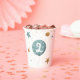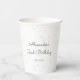 Festive and cute 2nd birthday party paper cups with an illustration of a blue balloon and the number two in white typography. Great for any kid's second birthday or two year celebration, these party paper cups will be a delight to use. Illustrated and designed by Patricia Alvarez.