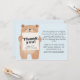 Thank your loved ones in the cutest way with this baby announcement card featuring a charming bear holding a sign that displays “Thank you” along with your baby boy’s name, weight, and size. The back of the card includes a heartfelt thank-you message, perfect for sharing your gratitude for gifts and support. A sweet design with a light blue theme, ideal for celebrating your little cub!