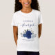 This cute t-shirt is the perfect way to thank your wedding flower girl. Features a beautiful design with a cluster of hand painted watercolor roses in shades of royal, navy, and dusty blue along with elegant script lettering reading "Flower Girl". There is space for her name at the top with the names of the couple and wedding date below. Perfect as a thank you gift or as identification at a wedding rehearsal or other wedding related event.