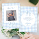 Experience timeless elegance with our classic preppy baby boy shower photo thank you cards, showcasing a charming baby blue gingham bow ribbon. Express your gratitude in style with these personalised thank you cards.