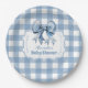 Cute Blue Bow Ribbon Gingham Paper Plate