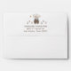 A cute blue stripe boy baby shower envelope featuring a boy lamb and flowers. Simple stripe pattern decorates the inside of the invitation. Personalise it for your boy baby shower. Designed for you by Blackberry Boulevard