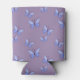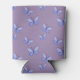 The can cooler features a violet background, and a pattern of periwinkle blue butterflies in doodle style.For custom design enquiries or assistance with customisation, please contact us at info@KBMD3signs.com.