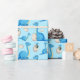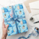 cute blue cartoon dinosaur pattern with baby dino wrapping paper