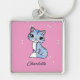 A charming custom name design featuring an adorable blue cat against a vibrant pink backdrop, adding a touch of whimsy and personalisation.