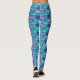 Cute and trendy blue leggings with colourful heart patches in an abstract and geometric pattern.