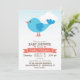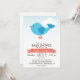 Cute Blue & Coral Bird Baby Shower or Sprinkle Invitation