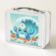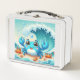 A cute happy blue Crab and his little happy crab friends, on the beach with a blue ocean wave in the background, printed on Lunch Boxes.