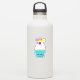 A vinyl decal with a cute blue cupcake with pink frosting and a kawaii smiling face. A cherry on top also has a cute happy face. A shooting star is flying in the air.