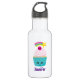 A water bottle with a cute blue cupcake with pink frosting and a kawaii smiling face. A cherry on top also has a cute face. A shooting star is flying in the air.  Personalise with a name.