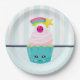 Cute Blue Cupcake with Kawaii Face Paper Plate