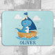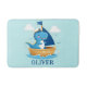 Personalised sailboat Captain Dino – a charming bath mat where a cute blue dinosaur takes charge of a delightful small sailboat adventure. Ignite your child's imagination with this nautical-themed design.