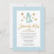 Celebrate the upcoming arrival of your precious baby with this elegant, chic, pretty and dreamy 'Shower by Mail Invitation' featuring featuring a blue dinosaur happily waving hello under the stars at the front. The title features gold foil like calligraphy. The background features pastel blue green arrow pattern. All the texts are pre-arranged for you to personalise easily and quickly with your baby shower details.