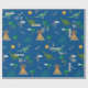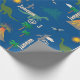 Cute Blue Dinosaur Pattern Wildlife Plants Name Wrapping Paper