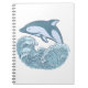 Illustration of cute blue dolphin in retro style with sea waves decoration for everybody who loves lovely dolphins