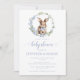 Adorable baby boy shower invitation featuring a charming blue watercolor Easter bunny rabbit surrounded by spring flower wreath.