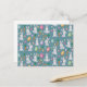 Cute Blue Easter Bunny Rabbit Pattern Holiday Postcard