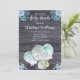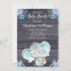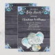 Cute Blue Elephant Rustic Boy Baby Shower Invitation