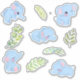 These cute baby elephant stickers adorable blue baby elephants in five different poses. Five choices of tropical botanical leaves perfectly complement each elephant. Perfect for birthday parties, baby showers, or party favours for special occasions.