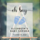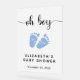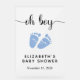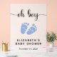 Cute frosted acrylic welcome sign for your baby boy shower featuring "oh boy" in a chic script with swashes and a pastel blue watercolor of baby feet.