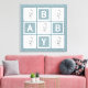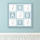 Showcase your favourite baby photos with this adorable blue floral canvas display. Soft pastel blue floral patterned background with 9 simple white square photo frame areas in a grid pattern 3 x 3. This would look great with black and white or full colour photographs. BABY is spelled out among the empty squares. Other colours available, with or without personalised name. Example photo is public domain and must be replaced with your own photographic images or artwork. The square format works wonderfully with instagram pictures. I use instaport to download my own instagram photos. Large 24 x 24 size makes this a substantial piece, and works with standard instagram file sizes.