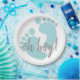 Cute and fun, these paper plates are the perfect accessory for any "it's a boy" baby shower. The design features a soft blue set of baby feet on the front with grey text to fit all of the baby shower details. The back features a matching blue background with white baby footprints.