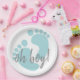 Cute Blue Footprints Baby Shower Paper Plate