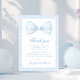 Elegant preppy baby boy shower thank you card showcasing cute light blue bow tie surrounded by gingham pattern. Perfect for boho classic styled celebrations.