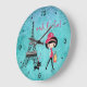 Cute Blue Girl, Cat and Eiffel Tower Paris Clock