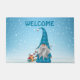 Cute gnome in blue suits with snowflakes on a blue background and Christmas decor