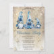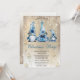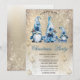 Cute Blue Gnomes Snowflakes Gold Party Invitation
