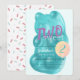 This cute " two sweet " birthday party invitation features a light blue background with a turquoise blue gummy bear candy and a balloon. The reverse side features a white background with sprinkles. Personalise it for your needs. You can find matching products at my store.