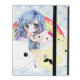 This design features a cute anime chibi girl with deep blue eyes and rainbow, kawaii stars, lovely clouds on baby blue with polka dots background. Illustration by Dao Thuy Duong.