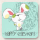 A very cute Easter design of a cartoon Easter bunny holding eggs against a light blue background. This freepik design is whimsical and nostalgic - perfect for Easter.