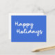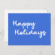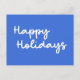 This cute postcard simply has the phrase Happy Holidays in a whimsical script cursive lettering on a blue background.