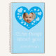 A notebook with a blue heart shaped photo frame for adding your personal photo. A great keepsake for writing down the cute things about your son.