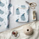 Watch the joy in your child’s eyes as they open their Christmas presents this holiday with this adorable wrapping paper. This Christmas gift wrap design features a cute blue cat with a dark blue hat and a star pattern against a simple off white background. So sweet for either a boy or a girl.