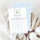 Sophisticated classic "Bingo" game designed for a baby boy shower, adorned with a charming bunny surrounded by blue flowers and gingham pattern. Engage your guests with this delightful game, perfect for adding fun and excitement to your celebration while creating cherished memories.